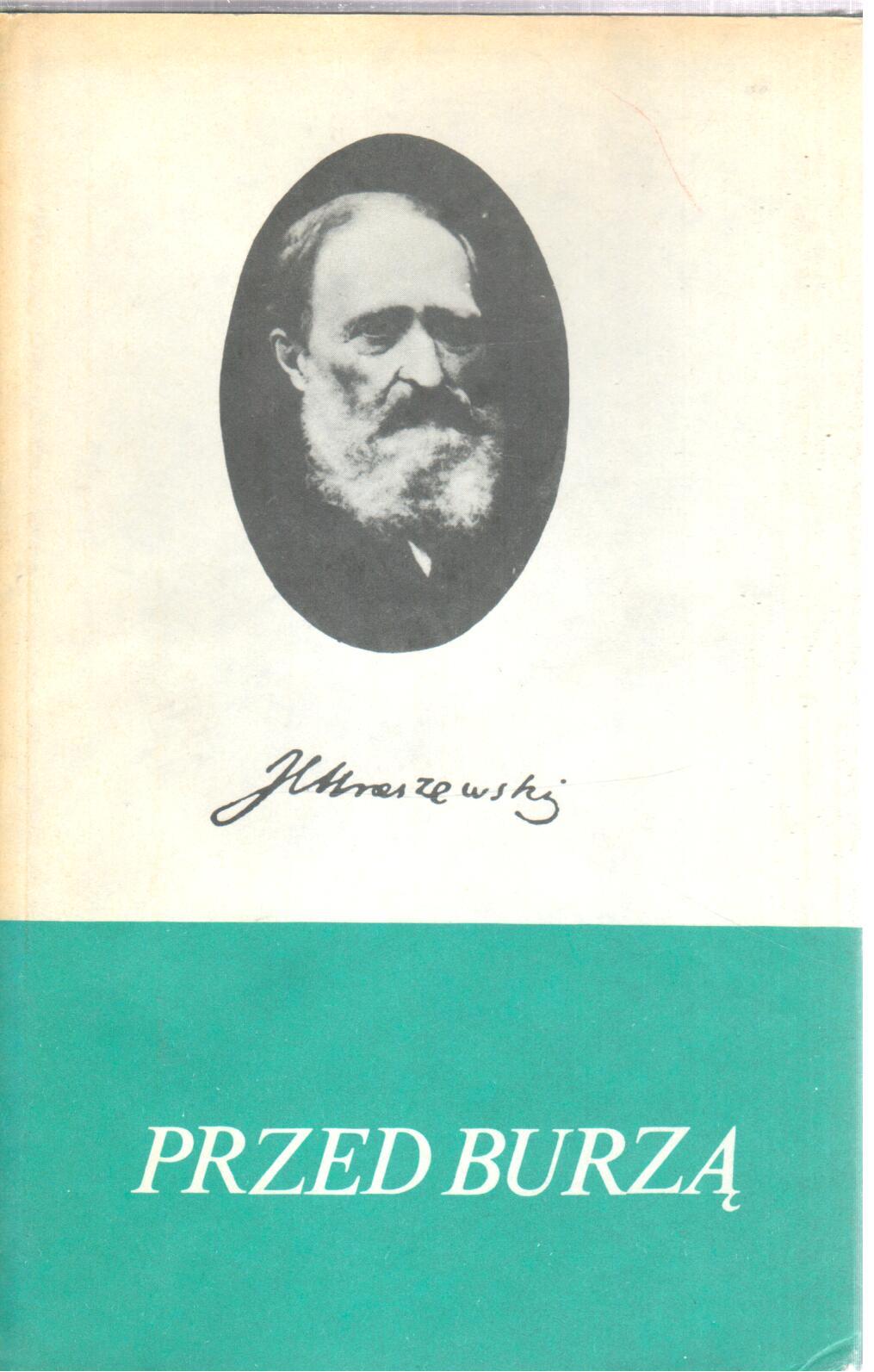"Przed burzą" - powieść ukazująca obraz Warszawy w okresie bezpośrednio poprzedzającym wybuch powstania listopadowego. Z jednej strony terror zaborcy, z drugiej zróżnicowane postawy Polaków. Od lojalistycznie nastawionych warstw wyższych, poprzez opozycyjną w zasadzie szlachecką prowincję i mieszczaństwo żywiące naiwną nadzieję na wyzwolenie Polski dzięki ingerencji zagranicy - aż do patriotycznej młodzieży, zapalonej, zdecydowanej na zbrojną rozprawę z zaborcą. Niestety bez wodza i programu. Wizerunek ówczesnego społeczeństwa polskiego wzbogaca Kraszewski echem sporu romantyków z klasykami; relacjami o autentycznych wydarzeniach i osobistościach; epizodami z postaciami historycznymi. Na tym tle rozwija się romansowa fabuła, której bohaterami są: Kalikst Rucki, syn oficera napoleońskiego, brat belwederczyka, sam spiskowiec, piękna i szlachetna Julia Brennerówna oraz jej ojciec, szpicel w. księcia Konstantego.