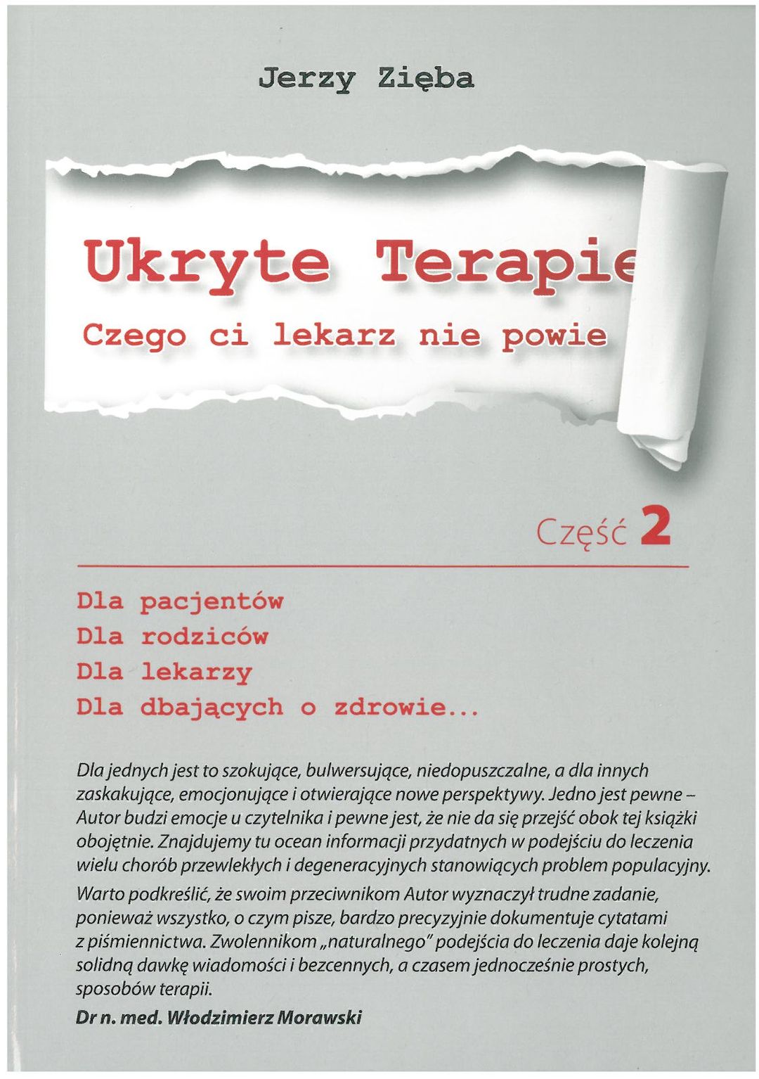 Ze względu na ciągle szerzącą się dezinformacje odnośnie tłuszczów zwierzęcych i choroby wieńcowej serca, w drugiej części "Ukrytych terapii" wyjaśniam to znacznie dokładniej, wyjawiając kłamstwa jakie temu zagadnieniu towarzyszą od dziesiątek lat. Okłamywanie społeczeństwa jak również lekarzy w sprawie cholesterolu wydaje się nie mieć granic. Temat ten został potraktowany również znacznie szerzej szczególnie, że przemysł farmaceutyczny w sposób perfekcyjny oszukał lekarzy w sprawach cholesterolu. Lekarze zupełnie nieświadomie dopuszczają się absolutnie skandalicznych praktyk dotyczących jego obniżania. Książka opisuje w jaki sposób oszukano lekarzy jak i pacjentów. Największym problemem jaki przebijał się bezustannie w komentarzach czy rozmowach bezpośrednich były oczywiście choroby nowotworowe. W tych wszystkich opisach wstrząsające było jedno: przerażający brak skuteczności medycyny akademickiej w leczeniu tej choroby. Lekarze i pacjenci znajdą w książce szczegółowe opisy metod czy substancji, dzięki którym człowieka chorego na nowotwór można leczyć znacznie bardziej efektywnie, bezpieczniej i taniej. Opisywane substancje czy też metody leczenia choroby nowotworowej, co skrzętnie ukrywane przed pacjentami, jak i środowiskiem medycznym. W rozdziale o szczepionkach ujawnione są fakty, o których opinii publicznej się nie zawiadamia. Fakty te, bezsprzecznie wskazują na to, że lekarze jak i rodzice dzieci zostali perfidnie oszukani. Książka również opisuje skandaliczne, a jednocześnie nie ujawniane społeczeństwu fakty dotyczące systemu zdrowia, które znajdują się na granicy przestępstwa kryminalnego. Książka pokazuje także sposób rozwiązania wielu problemów dotyczących leczenia pacjentów przewlekle chorych. "Jerzy Zięba w drugiej części »Ukrytych Terapii« zabiera czytelnika we wszechświat równoległy, w którym obowiązują jakby nieco zmienione prawa fizyki. Znajdujemy się w innym otoczeniu, do czego byliśmy przyzwyczajeni, wygląda trochę inaczej. Wynika to z całkowicie zmienionego sposobu spojrzenia na to, czym jest choroba i jakie są możliwości jej leczenia [...]. Równie ważna jest nadzieja, krórą autor daje ludziom chorym, będącym bardzo często osmotnionymi ze swoją chorobą. Niemniej ważne jest to, że Jerzy Zięba budzi w czytelniku "świadomość obywatelską". Wielokrotnie powtarza, że to my czyli obywatele jesteśmy rzeczywistymi pracodawcami urzędników i funkcjonariuszy publicznych, w związku z czym mamy prawo wymagać od nich pracy na rzecz naszego dobra. [http://www.empik.com/ukryte-terapie-2-zieba-jerzy,p1130616026,ksiazka-p].