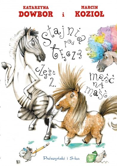 W „Stajni pod tęczą” wszystko po staremu. Tylko Lukrecja została przeniesiona do boksu obok Niunia, kiedy stało się jasne, że została jego arabską księżniczką na dobre i na złe. Niby nic się nie dzieje, aż tu nagle stukot kopyt przed wrotami Stajni zapowiada pojawienie się gości. Pierwszy z nich, choć przypomina konia, pokryty jest pasami. Na dodatek tylko w połowie. Ciotka Konstancja nie wita go z sympatią. Podobnie zresztą jak towarzyszącego mu roztańczonego kuca. Bo Ciotka dla zasady nie lubi obcych. ♞ I nie ceni innych ras - poza swoją.
