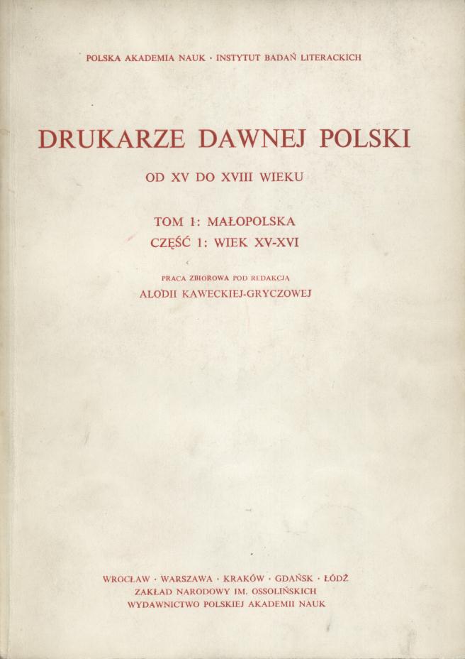 (Książka w Dawnej Kulturze Polskiej / Polska Akademia Nauk Instytut Badań Literackich ; 10)