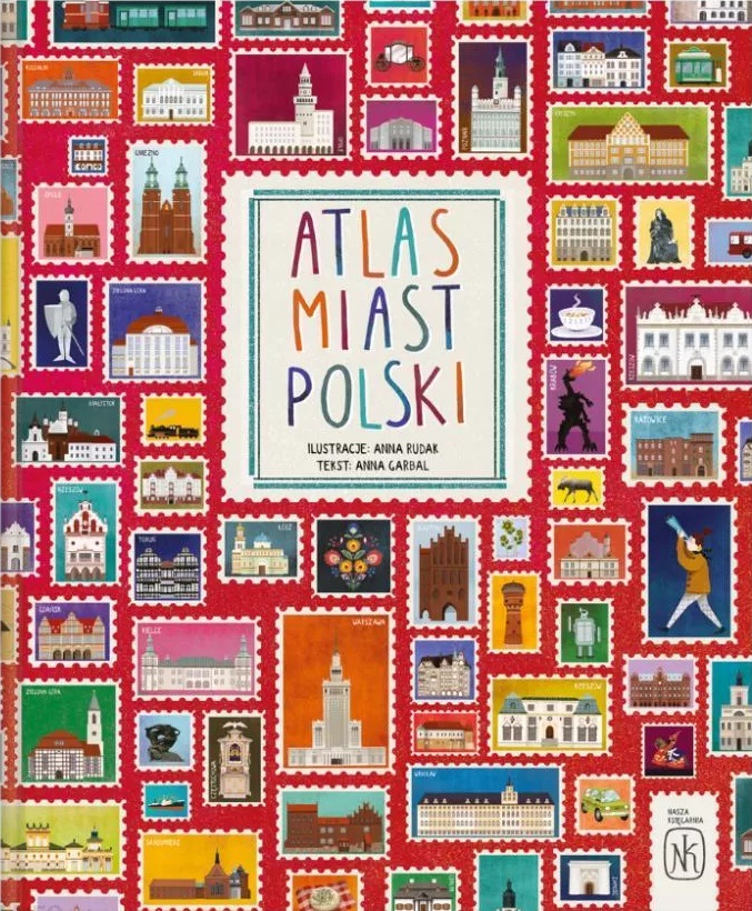 Atlas miast Polski / [tekst Anna Garbal ; ilustracje Anna Rudak]. - Warszawa : Wydawnictwo Nasz Księgarnia, 2019. - 63 strony : ilustracje kolorowe ; 35x29 cm.