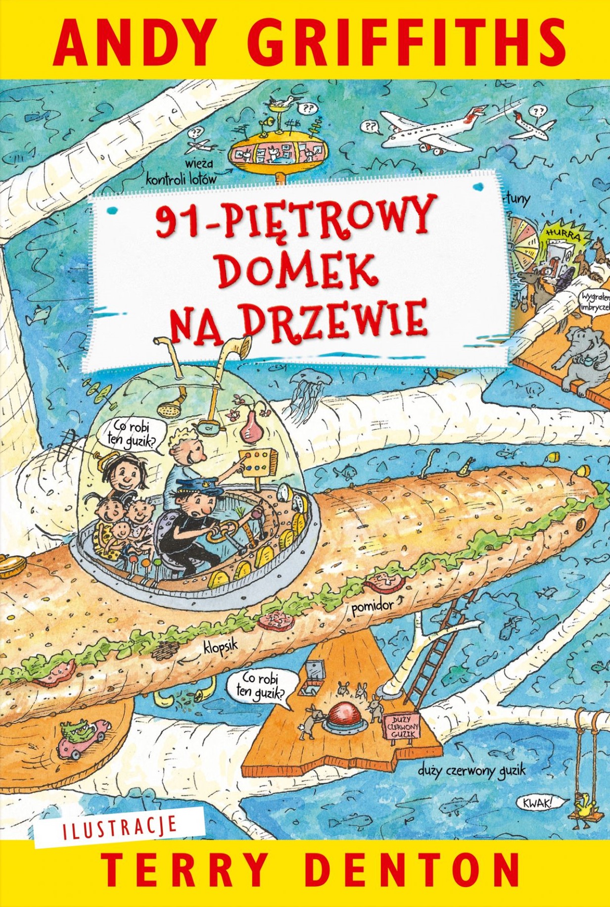 Andy i Terry mieszkają w dziewięćdziesięciojednopiętrowym domku na drzewie (mieli siedemdziesięcioośmiopiętrowy, ale się rozbudowali). A ten domek jest najfajniejszy na świecie! Znajdziecie tu między innymi: Bzdurnarnię, madame Wiewszystko, najwredniejszy wir wodny na świecie, centrum nauczania początkowego dla zwierząt, a także duży czerwony guzik, którego lepiej nie naciskać, bo...