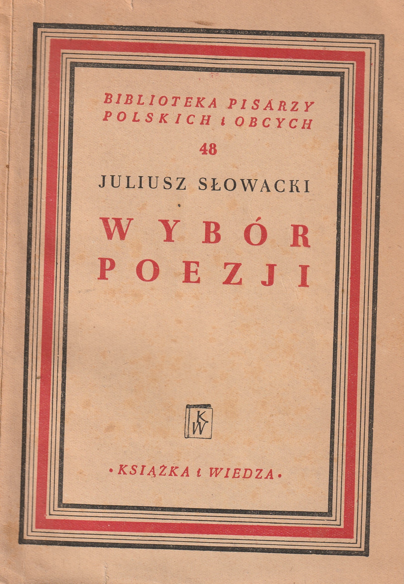 Wybór poezji / Juliusz Słowacki ; opracował i wstępem opatrzył Mieczysław Jastrun. - Wydanie drugie. - Warszawa : Książka i Wiedza, 1952. - XXXII, [2], 115, [1] strona ; 21 cm.