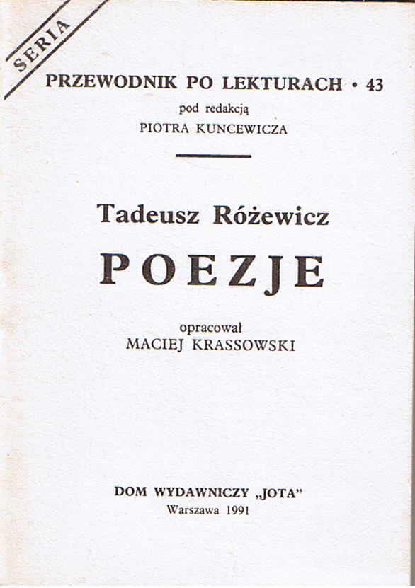 Poezje : Tadeusz Różewicz / Maciej Krassowski. - Warszawa : Jota, 1991. - 48 s. ; 10 cm.