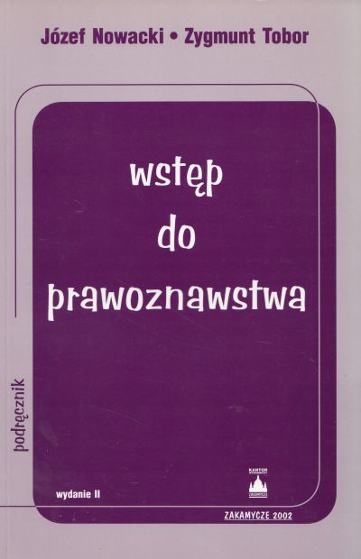 Wstęp do prawoznawstwa / Józef Nowacki, Zygmunt Tobor. - Wyd. 2. - Kraków : "Zakamycze", 2002. - 300, [1] s. ; 23 cm.