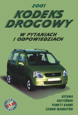 Kodeks drogowy 2001 w pytaniach i odpowiedziach. - Warszawa : Agencja Wydawnicza MZ, 2001. - 183 strony, [5] kart tablic kolorowych : rysunki ; 21 cm.